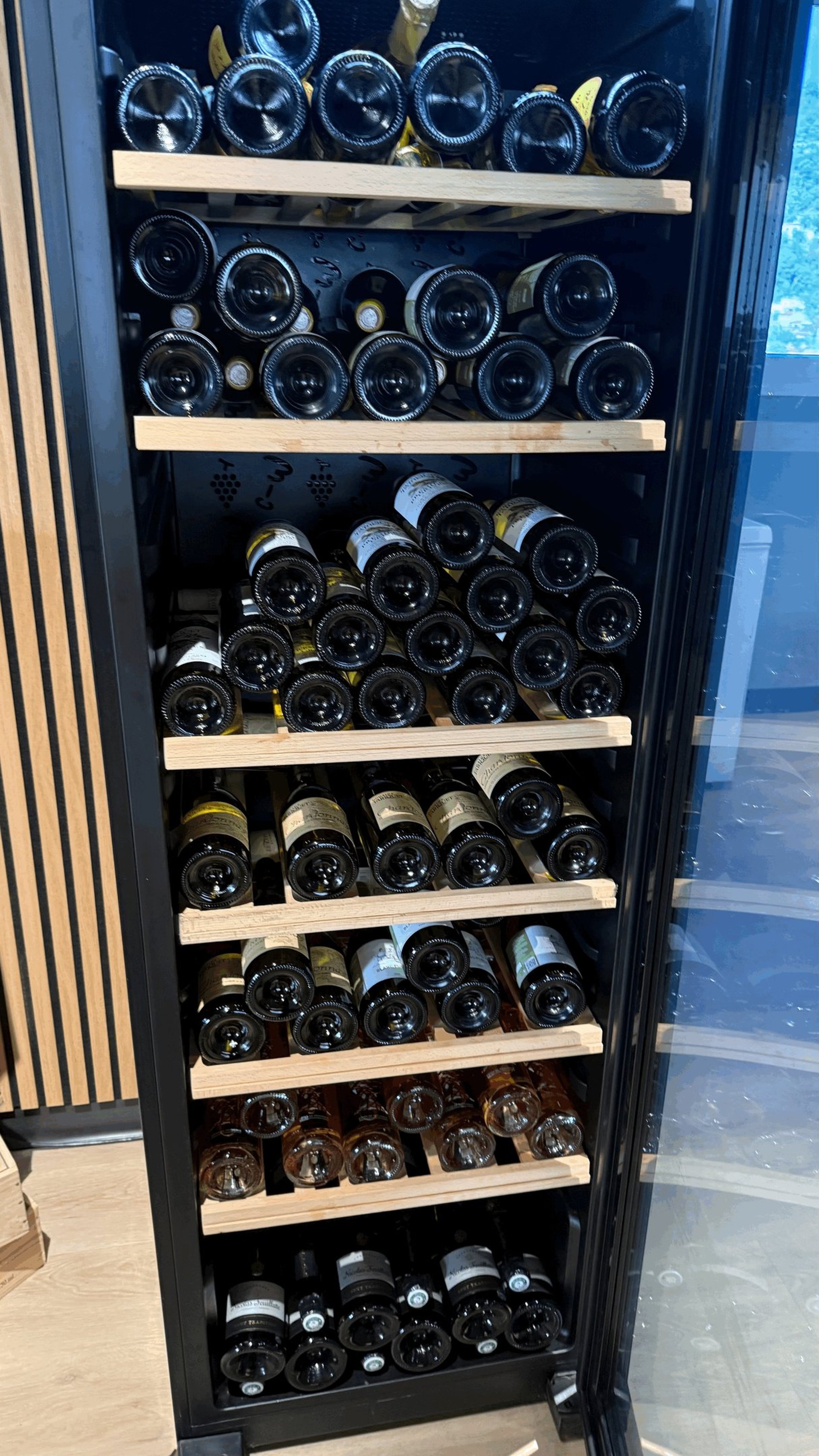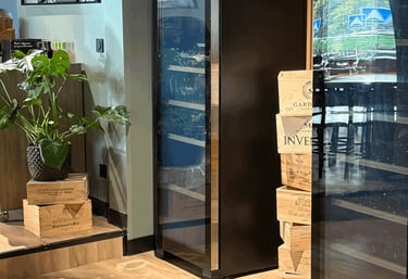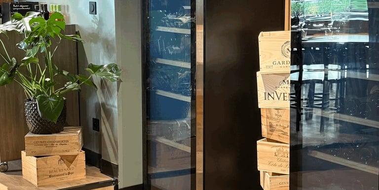 Située au cœur du restaurant, notre cave à vin offre une sélection soigneusement choisie pour accompagner vos repas.
